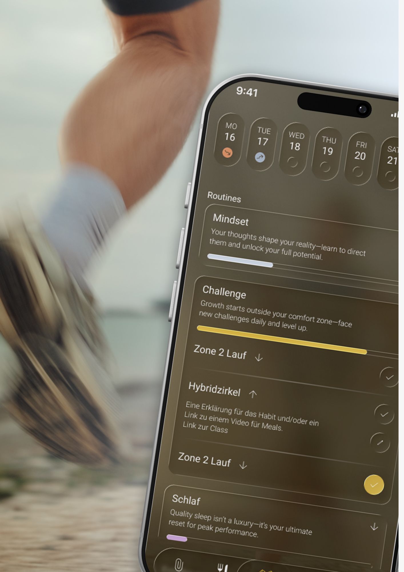 Deine Routinen sind klar aufgebaut und werden täglich sichtbar gemacht – so entsteht echte Konstanz, ohne dass du dich jedes Mal neu motivieren musst.